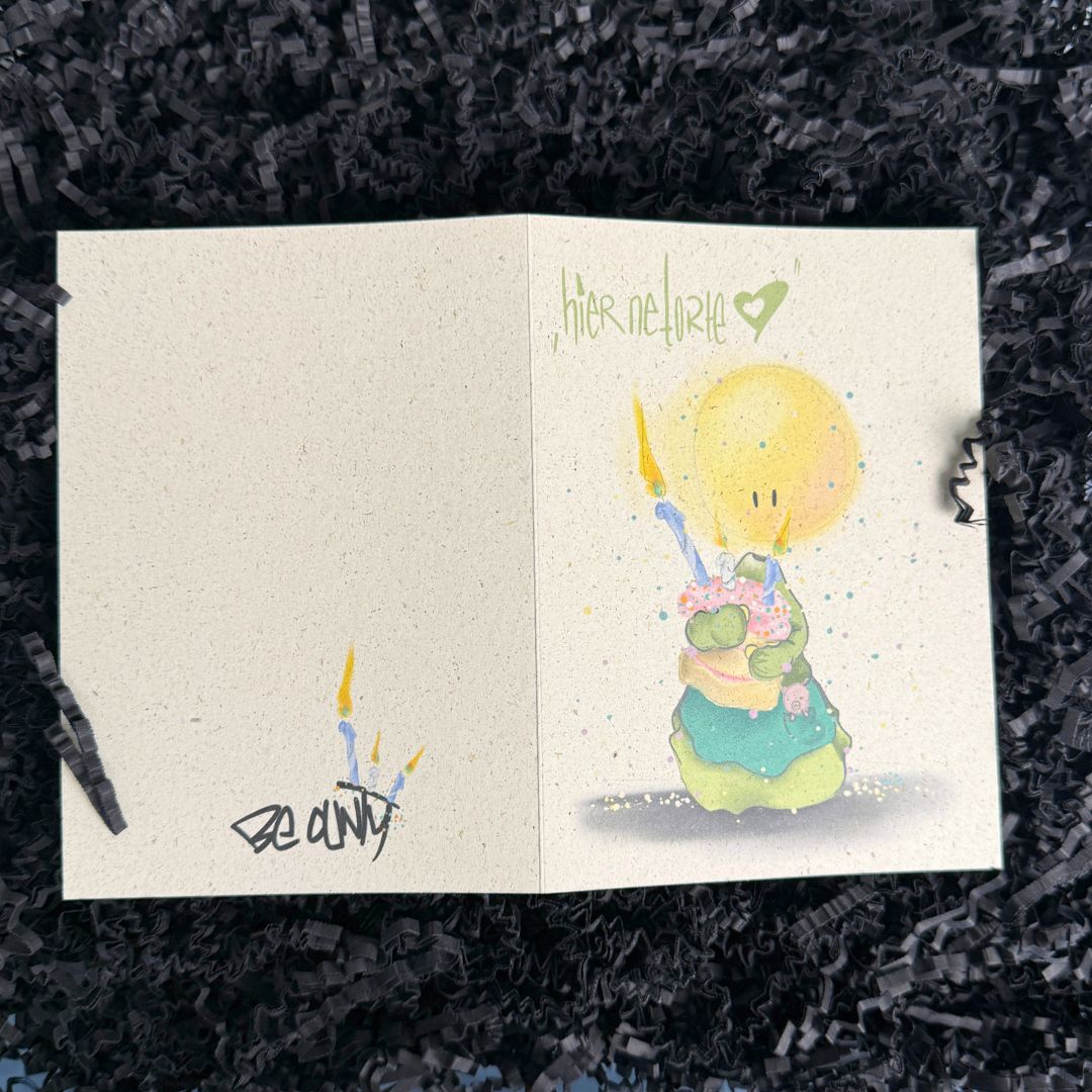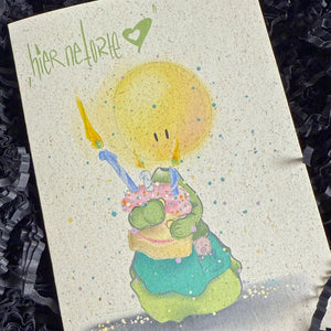 Die Karte ist aus 275g/m² starkem Graspapier und hat zusammengeklappt das Format DIN A6.